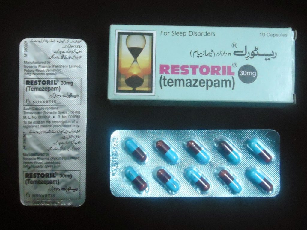 Restoril indeholder 30mg af Temazepam, som tilhører gruppen af benzodiazepiner. Det anvendes til kortvarig behandling af søvnløshed, stressrelateret søvnforstyrrelse, angst om natten og andre tilstande, som forstyrrer nattesøvnen.